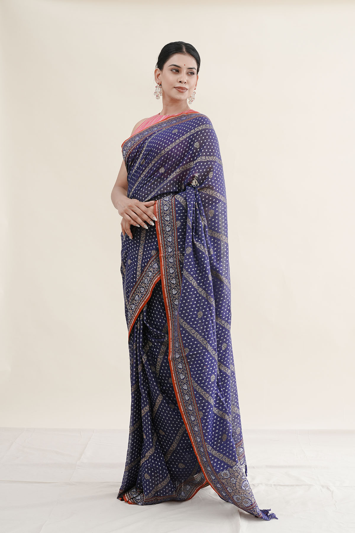 Collection Note: The saree comes with its own blouse piece. The model is wearing a separate blouse for styling purposes.