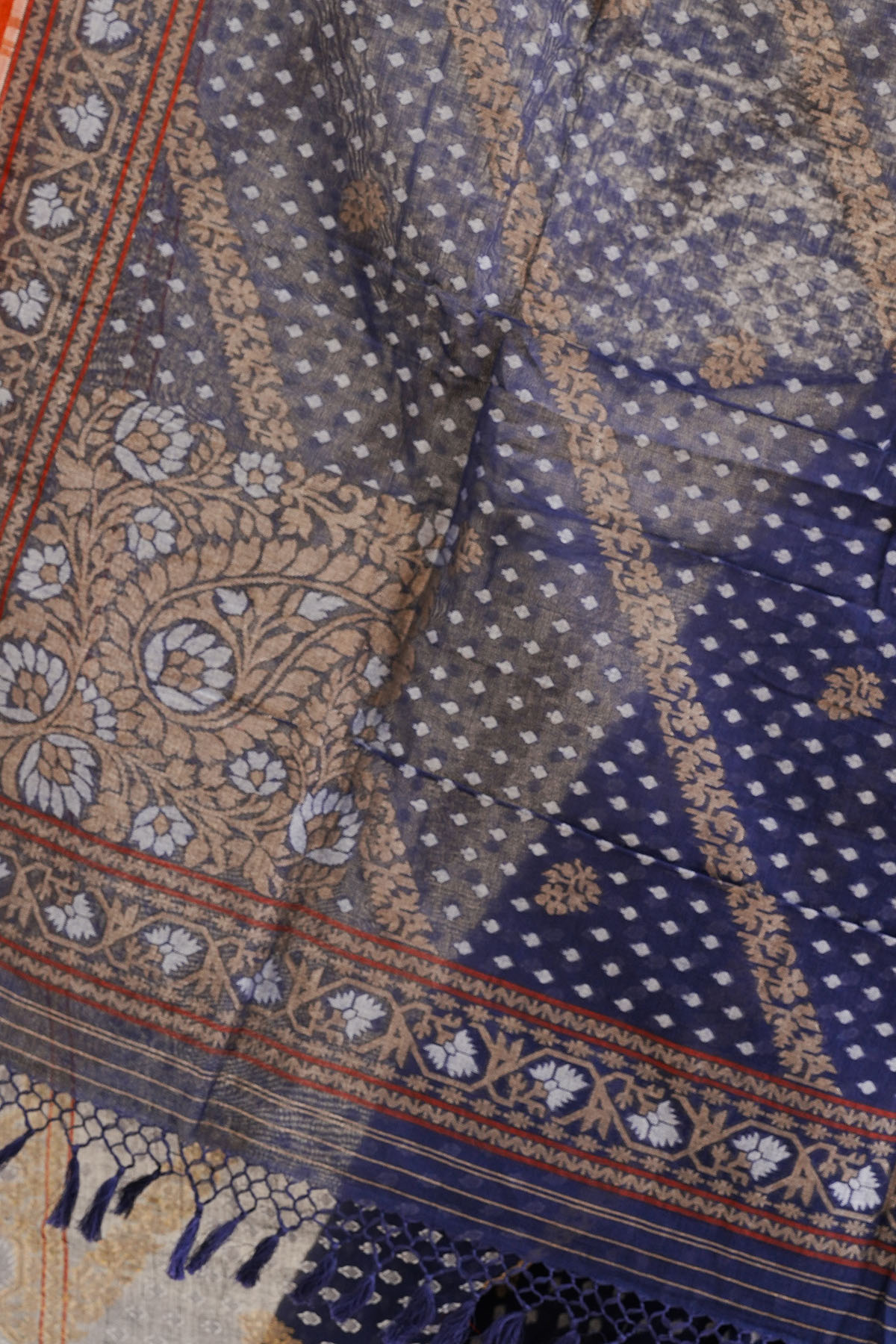 Technique: An enduring Kadwa weave. The elaborate and laborious Kadwa (Kadhua) technique involves hand-weaving each motif separately. It takes longer on the handloom, but makes a more robust pattern, which stands out on the fabric.