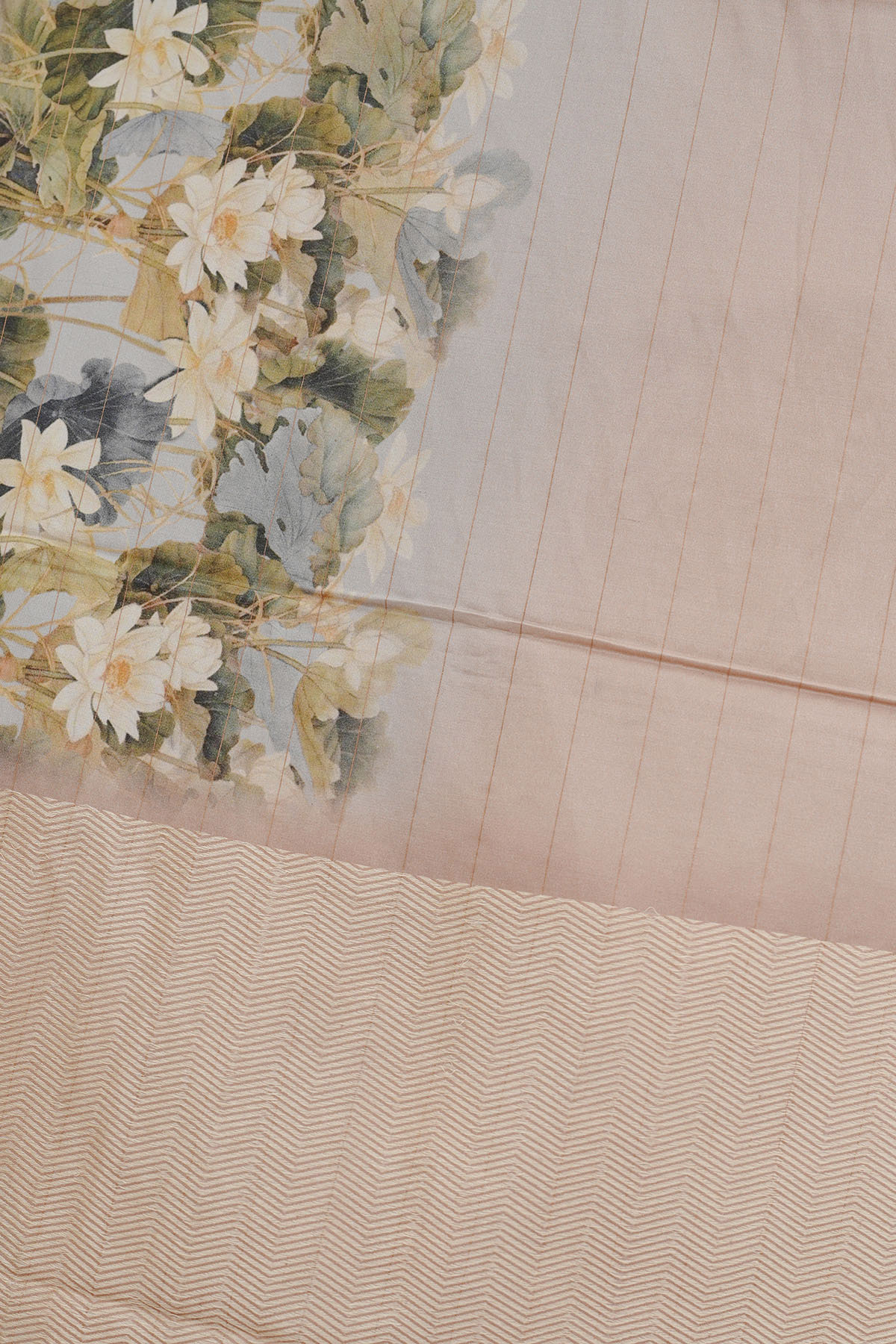 The smooth texture lends a fluid drape that glides effortlessly, while the delicate floral accents along the border add a hint of softness and feminine allure - perfect for an elegant and timeless look.